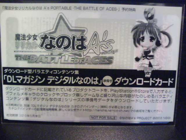 お後・・・まずは予約特典の「デジタルなのは準備号 ダウンロードカード」です。