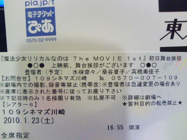 劇場版なのはの舞台挨拶チケの当選がキタ━━━━(゚∀゚)━━━━!!!んですよ!!!